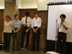 下田校長先生、遠藤事務部長、学生主事補の佐竹先生の来賓の方々をお迎えし、さらに在校生5名も招待に応じてくれました。