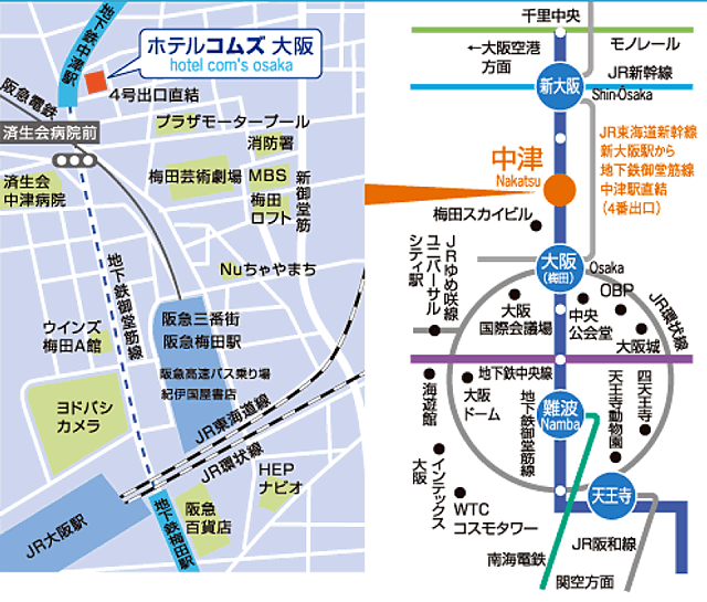 (宿泊を希望される方の予約は、ホテルコムズ大阪に